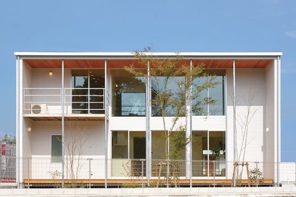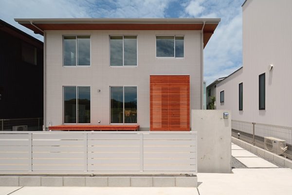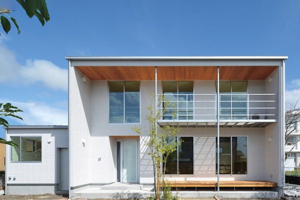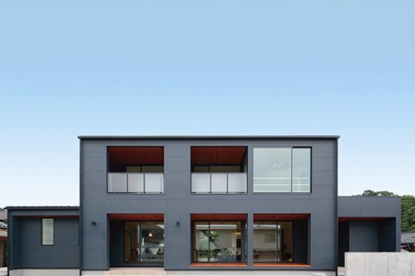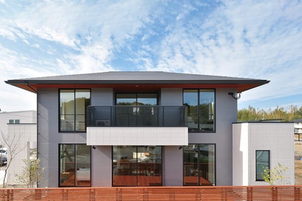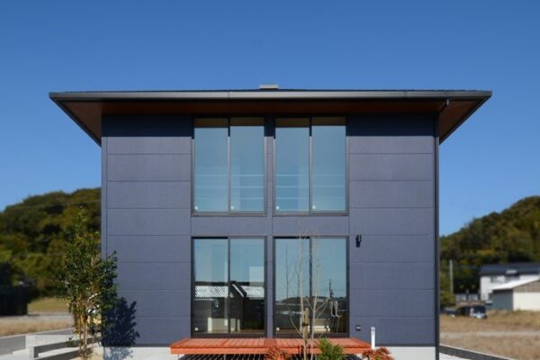 ヘーベルパワーボード外壁を使った、箱型外観のモデルハウス