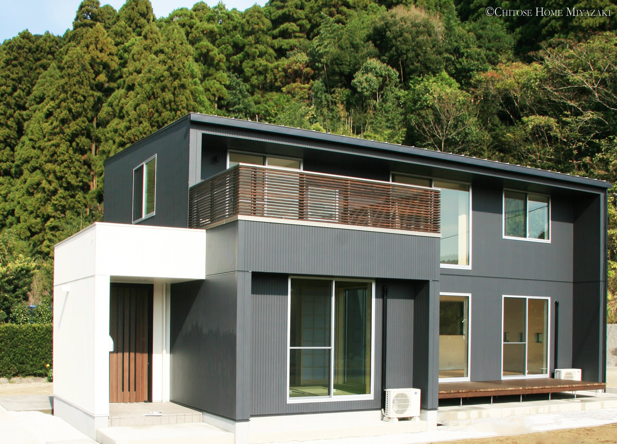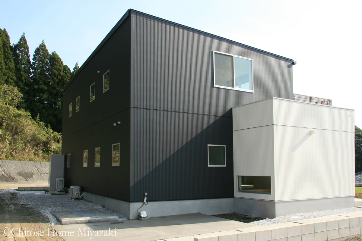 クロとシロのコントラストの効いた外観。シンプルな箱の組み合わせによる構成が、飽きのこない普遍的な佇まいを実現。